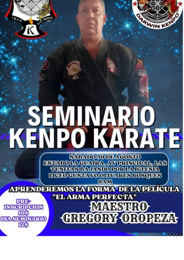 The participants will learn the Form from the Movie "The Perfect Weapon" from 1991, The Master Gregory Oropeza will teach during the semina...